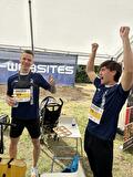 Max nam het stokje over en verraste iedereen door met een tijd van 00:46:32 een van de snelste ronden te lopen. Hij had van tevoren gedacht er een uur over te doen! Hij werd opgevolgd door Tim - de broer van Ron - die door de onverwachte snelle tijd van Max nét een minuut bij de start/finish stond. Hij liep de 10 kilometer in 01:04:25.