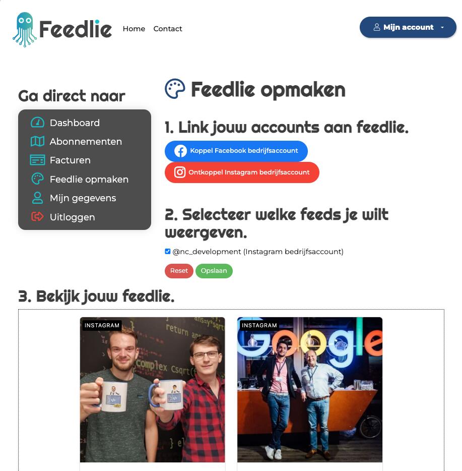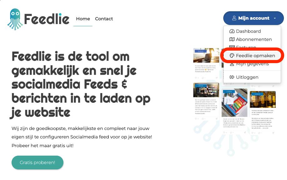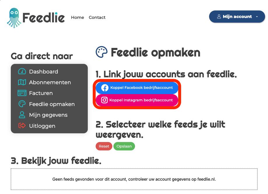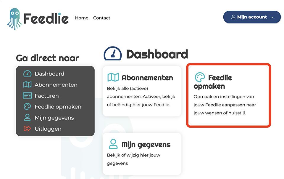 Stap 2: Klik op de knop "Feedlie opmaken" onder "Mijn account" of via jouw dashboard.