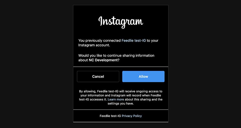 Stap 5: Sta vervolgens toe dat Feedlie toegang krijgt tot je social media account.