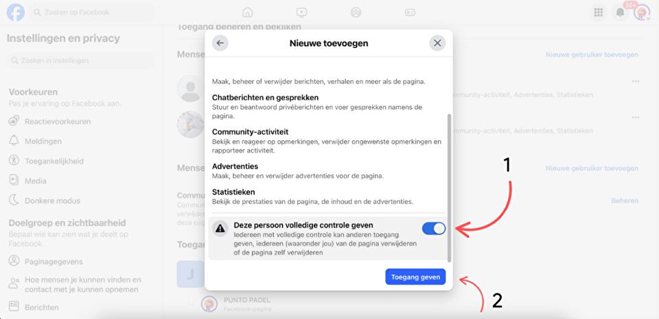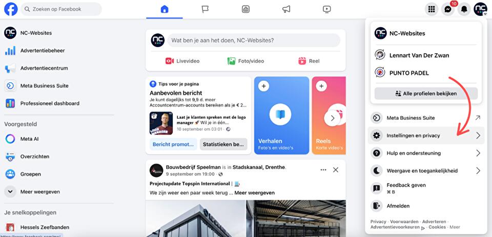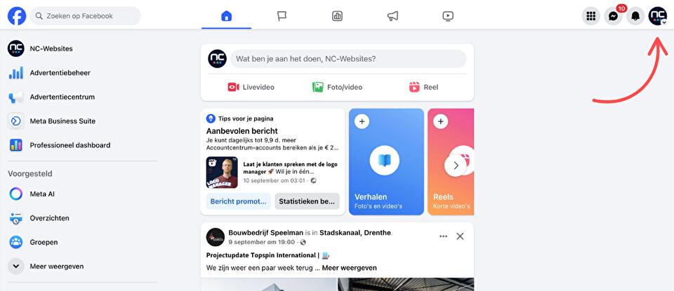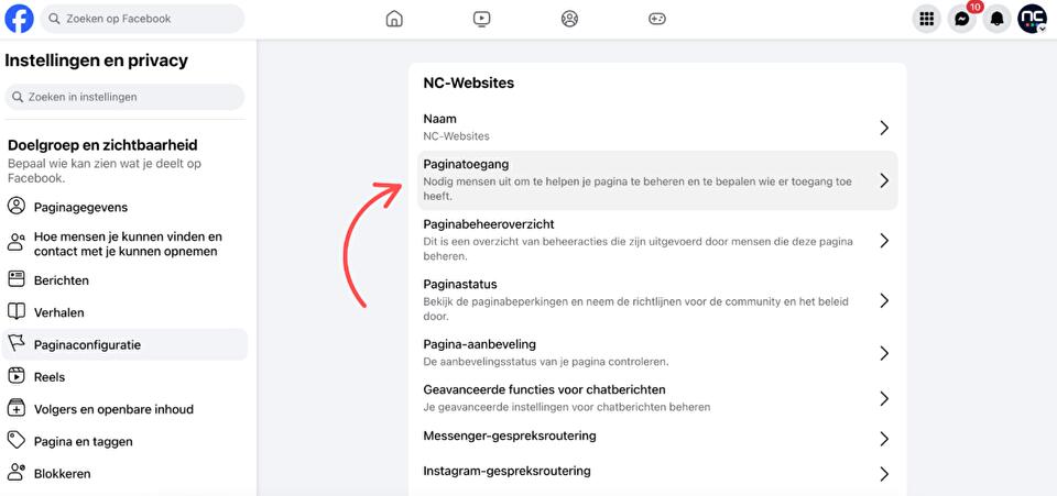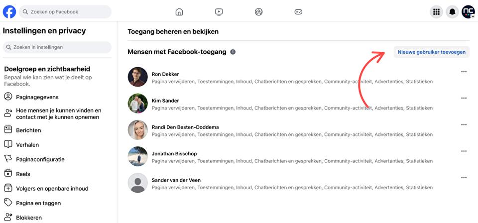 Voeg NC-Websites toe als beheerder van jouw Facebookpagina.