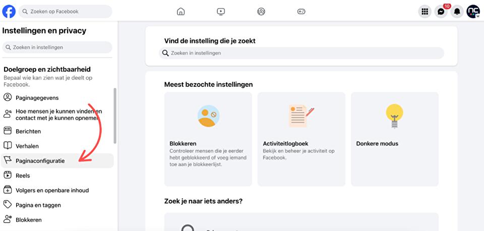 Stap 4: In het menu links scroll je naar beneden en klik je op ‘Paginaconfiguratie’.