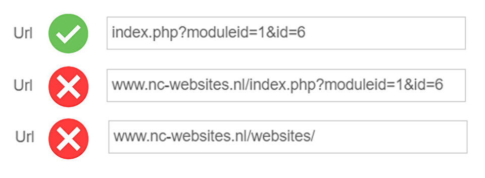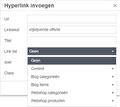 2b. Staat je pagina er niet bij? Dan kun je handmatig een URL invullen in 'Url'. Kopieer dan de link van de pagina, maar verwijder de domeinnaam die ervoor staat. Gebruik niet de SEO-vriendelijke URL, maar die URL die je ziet als je bent ingelogd.