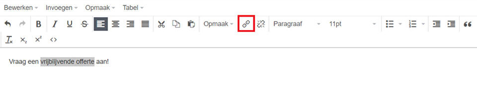 1. Selecteer de tekst die je wilt gebruiken voor je linkje (de ankertekst). Selecteer de knop 'hyperlink invoegen/bewerken'